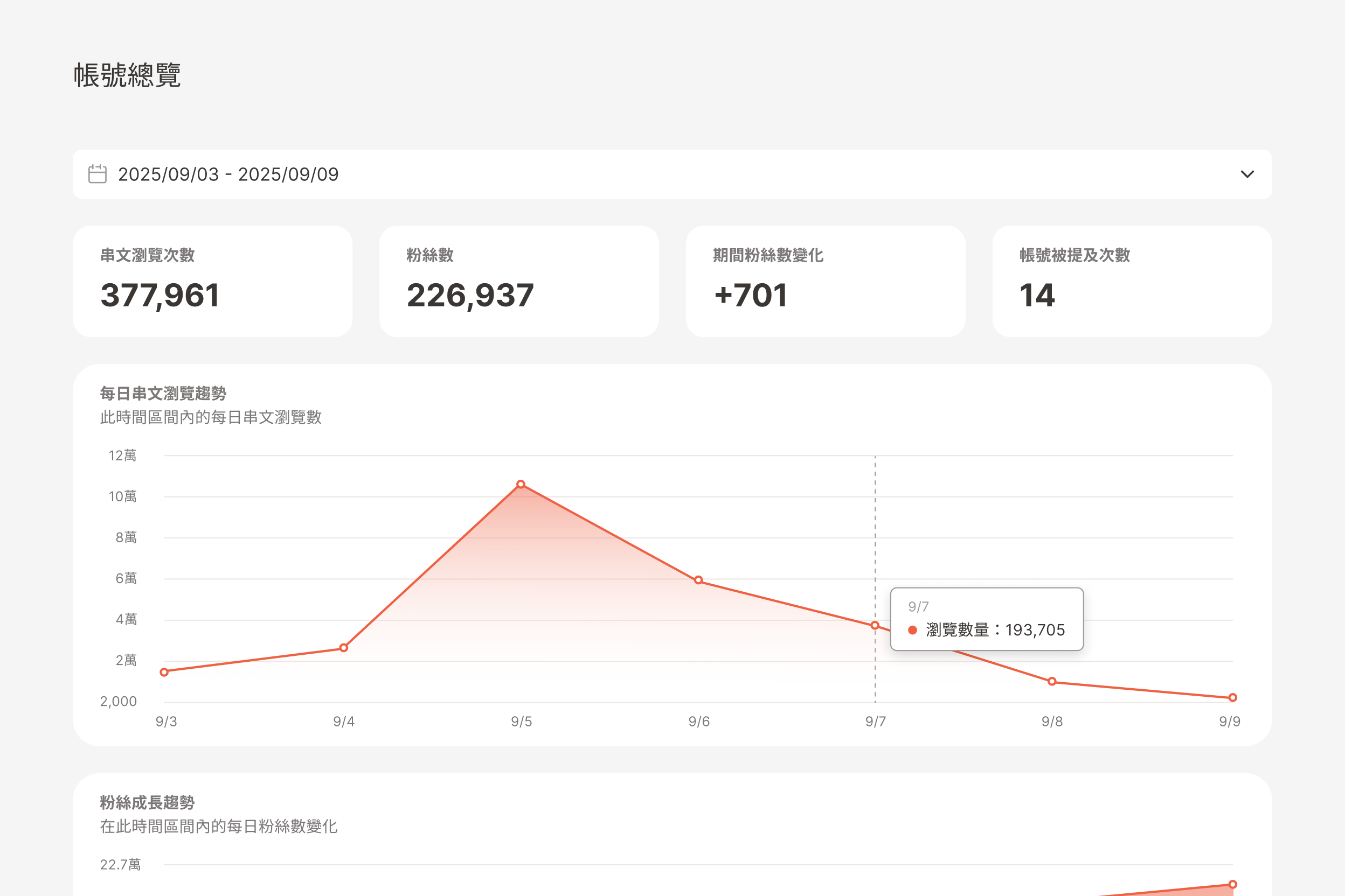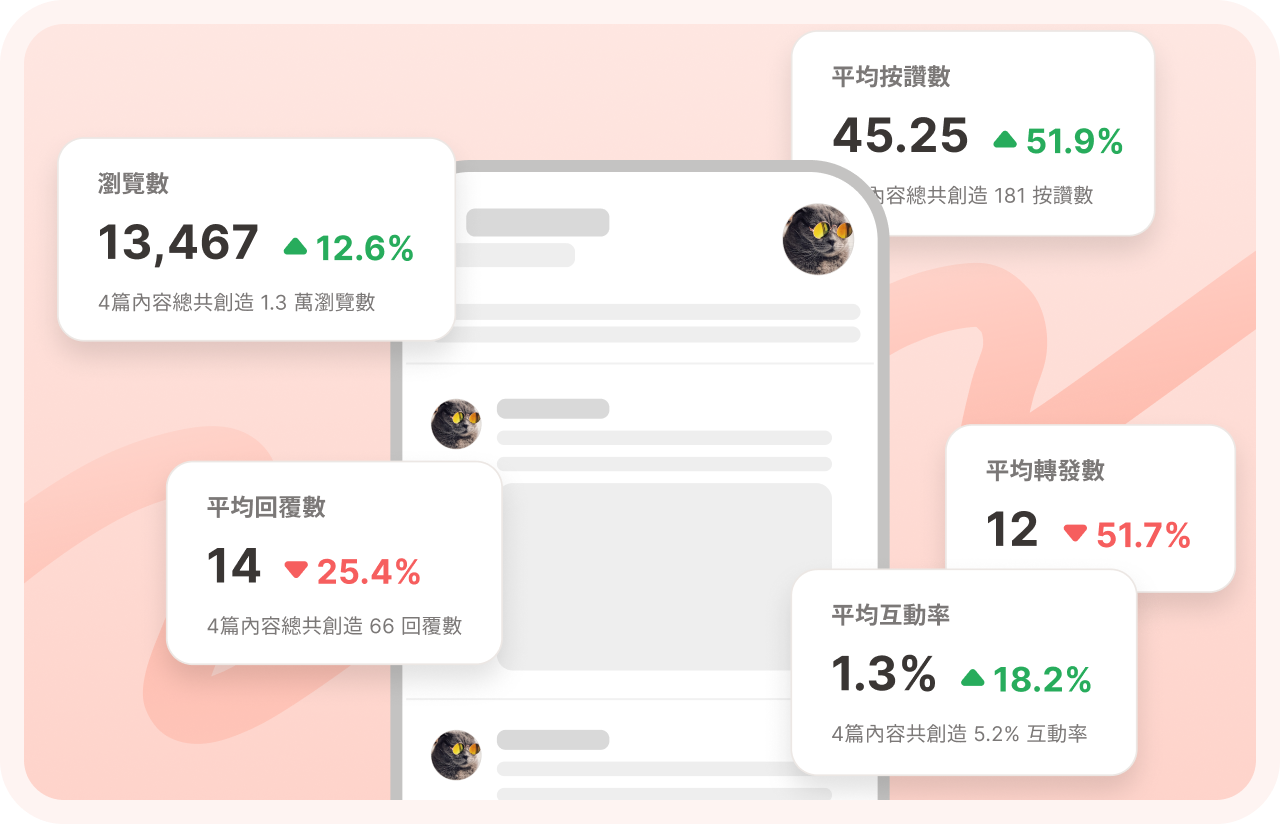 幫助品牌與創作者精準掌握內容表現與成長趨勢。