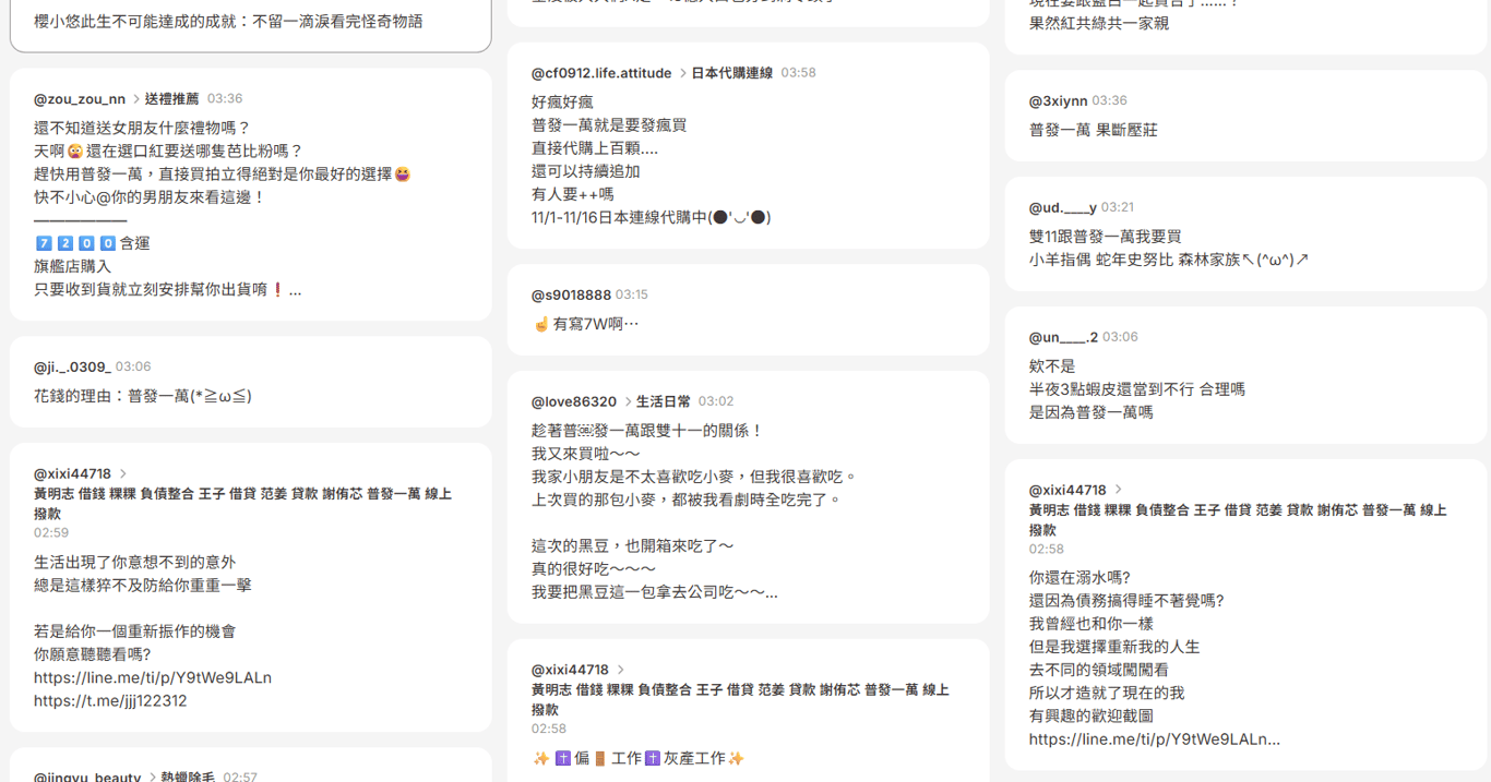 - 服飾美容類 次之,約 20.6%,集中在「雙 11 購物」「換季衣物」「買鞋或包」等。